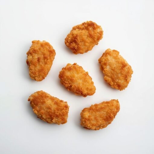 Chicken Nuggets sind knusprig gebratene Hähnchenstücke, ideal als Snack oder kleine Mahlzeit. Sie überzeugen durch ihren herzhaften Geschmack und lassen sich gut mit verschiedenen Dips oder Beilagen wie Pommes oder Salat kombinieren.