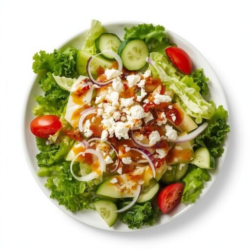 Der Gemischte Salat ist eine frische und leichte Mahlzeit, ideal als Vorspeise oder Beilage. Er besteht aus knackigem Salat, Gurken, Tomaten, Zwiebeln, würzigem Schafskäse und einer aromatischen Soße. Eine gesunde und erfrischende Wahl für alle, die frisches Gemüse genießen möchten.