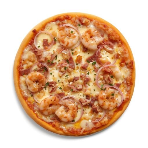 Die Pizza Ela ist eine aromatische Variante auf knusprigem Pizzaboden. Belegt mit fruchtiger Tomatensoße, reichlich Käse, Knoblauch, Thunfisch, Krabben und Zwiebeln entsteht eine herzhafte und geschmackvolle Mahlzeit – ideal für alle, die Meeresfrüchte und würzige Zutaten lieben.