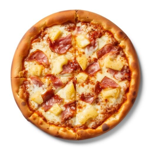 Die Pizza Hawaii ist ein beliebter Klassiker mit einer Kombination aus mildem Vorderschinken und süßer Ananas auf einem knusprigen Pizzaboden. Belegt mit fruchtiger Tomatensoße und reichlich Käse bietet sie eine ausgewogene Mischung aus herzhaften und fruchtigen Aromen – ideal für alle, die Abwechslung auf der Pizza lieben.