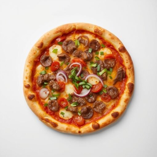 Die Pizza Kebap ist eine herzhafte Variante auf knusprigem Pizzaboden. Belegt mit fruchtiger Tomatensoße, reichlich Käse, saftigem Putenfleisch, Zwiebeln und würzigem Schafskäse entsteht eine aromatische und sättigende Mahlzeit – ideal für alle, die Döner-ähnliche Beläge auf der Pizza lieben.